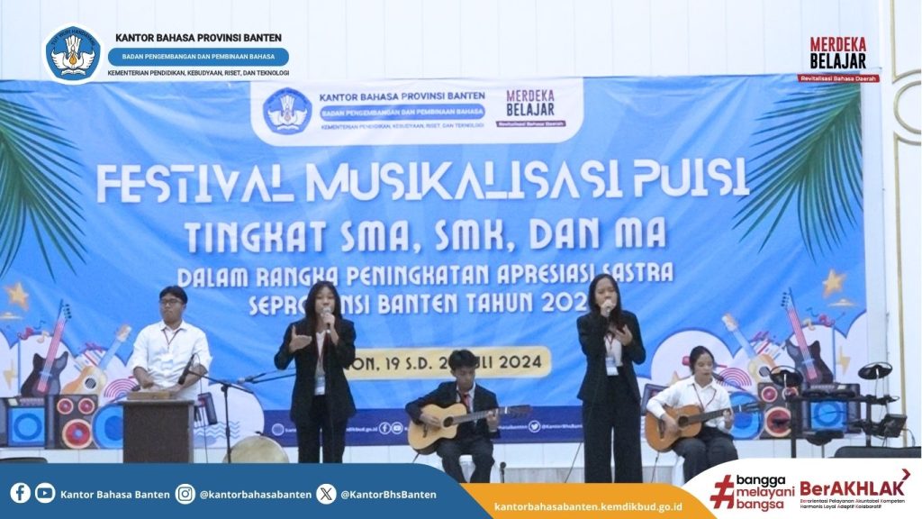 Serang, 15 November 2025 — Kantor Bahasa Provinsi Banten menyelenggarakan kegiatan Evaluasi Festival Musikalisasi Puisi tingkat SMA sederajat se-Provinsi Banten dan DKI Jakarta. Kegiatan yang berlangsung di Hotel Puri Kayana, Kota Serang ini diikuti oleh perwakilan dari 10 SMA di Banten dan 2 SMA dari DKI Jakarta. Kegiatan ini menghadirkan sejumlah narasumber kompeten di bidang […]