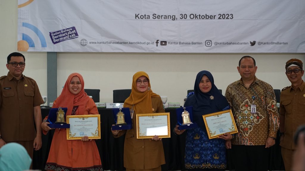 Kantor Bahasa Provinsi Banten melaksanakan Kegiatan Evaluasi dan Penghargaan Wajah Bahasa Lembaga Pengguna Bahasa di Ruang Publik se-Provinsi Banten pada Senin, 30 Oktober 2023. Kegiatan yang dilaksanakan di Kota Serang ini bertujuan untuk menyampaikan hasil evaluasi dari Kegiatan Pembinaan Lembaga dalam Pengutamaan Bahasa Negara yang telah dilaksanakan sepanjang tahun 2023. Kegiatan ini juga dilaksanakan untuk memberikan apresiasi kepada lembaga sasaran yang hasil persentase kenaikan perubahannya paling signifikan. Perubahan signifikan dari lembaga sasaran menunjukkan sikap positif lembaga sasaran terhadap penggunaan bahasa Indonesia sebagai bahasa negara meningkat.