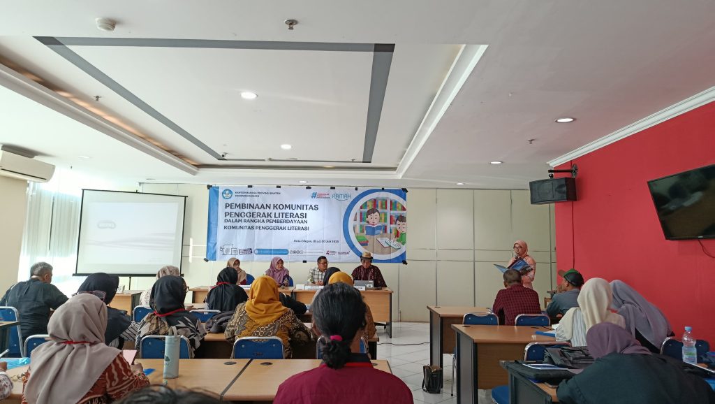 Cilegon, 19 Juli 2025 — Sebanyak 70 pegiat literasi dari berbagai komunitas di Kota Cilegon berkumpul dalam kegiatan Pembinaan Komunitas Penggerak Literasi dalam Rangka Pemberdayaan Komunitas Literasi yang diselenggarakan oleh Kantor Bahasa Provinsi Banten. Kegiatan berlangsung selama tiga hari, mulai Jumat hingga Minggu, 18–20 Juli 2025, dan bertempat di Graha Sucofindo, Kota Cilegon. Kegiatan ini bertujuan untuk meningkatkan kapasitas manajerial komunitas literasi, khususnya dalam hal perencanaan, pelaporan, dan pengelolaan program berbasis literasi. Para peserta mendapatkan pembekalan mengenai penyusunan profil komunitas, perancangan program inovatif, pembuatan proposal kegiatan, penyusunan Rancangan Anggaran Biaya (RAB), serta pelaporan keuangan.