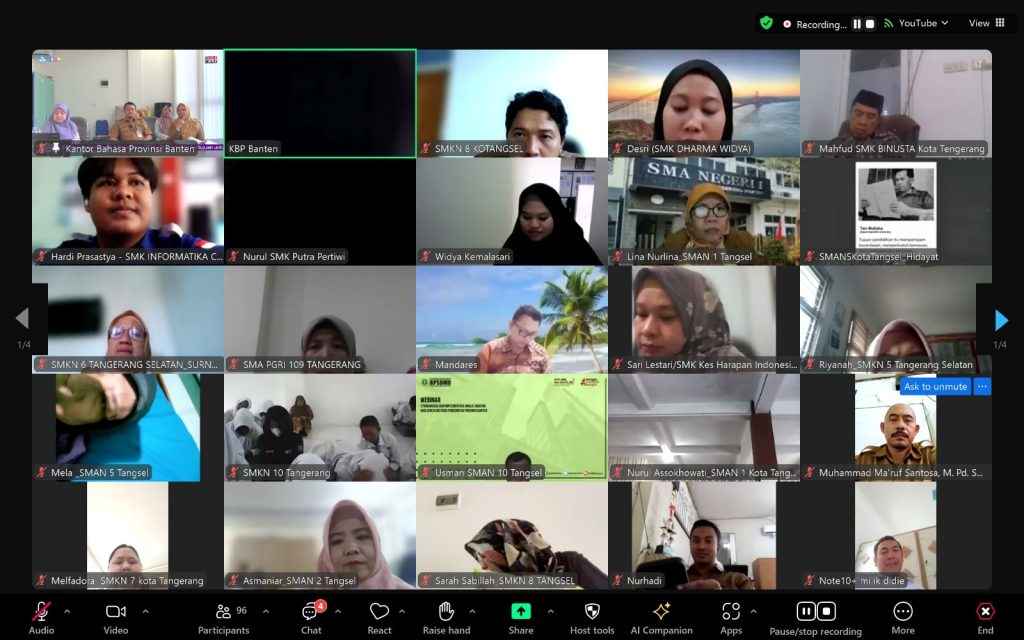 Pada Selasa, 5 November 2024, Tim UKBI Kantor Bahasa Provinsi Banten melaksanakan Sosialisasi bagi Pemangku Kepentingan di Lingkungan Dinas Pendidikan dan Kebudayaan Provinsi Banten Wilayah Kota Tangerang dan Tangerang Selatan. Sosialisasi dilaksanakan secara daring dengan mengundang kepala sekolah dan guru pendamping kegiatan UKBI. Kepala KCD Pendidikan Kotangsel, Teguh Setiawan, S.Ag., MSi., menjadi narasumber sosialisasi. Beliau menyampaikan Pelajar Mahir Berbahasa Indonesia untuk Meningkatkan Kemampuan Diri. Pelajar mengikuti UKBI sebagai langkah pendukung untuk literasi. Selain itu, Kasi SMK-SMh menyampaikan dukungan pelaksanaan UKBI di lingkungan SMA dan SMK.