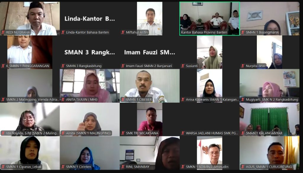 Pada Selasa, 29 Oktober 2024, Tim UKBI Kantor Bahasa Provinsi Banten melaksanakan Sosialisasi bagi Pemangku Kepentingan di Lingkungan Dinas Pendidikan dan Kebudayaan Provinsi Banten Wilayah Pandeglang. Sosialisasi dilaksanakan secara daring dengan mengundang kepala sekolah dan guru pendamping kegiatan UKBI. Kepala KCD Pandeglang, Dede Rukhyati, S.Ag., MSi., menjadi narasumber sosialisasi. Beliau menyampaikan pentingnya pelajar bangga berbahasa Indonesia.